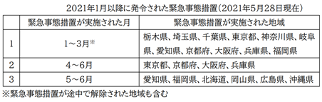 • 売上減少…緊急事態措置が実施された月のうち、いずれかの月の事業収入が、2019年or2020年の同月と比較して30%以上減少